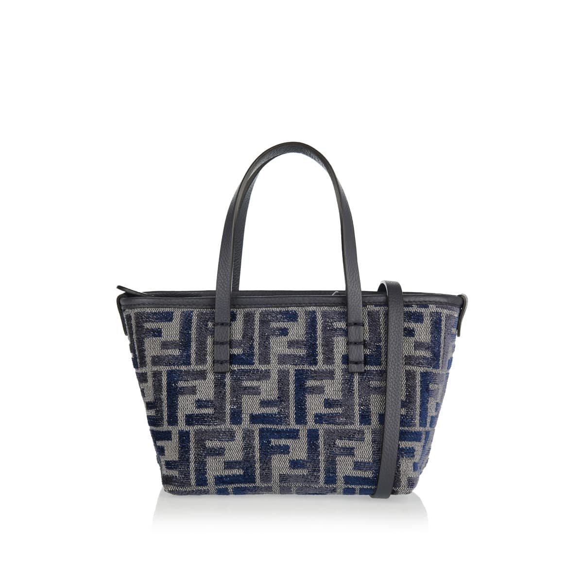 Αυτή η μίνι τσάντα Roll tote έρχεται σε όλο το μοτίβο FF σε μπλε και γκρι. Διαθέτει δύο λαβές και έναν αποσπώμενο ιμάντα ώμου.