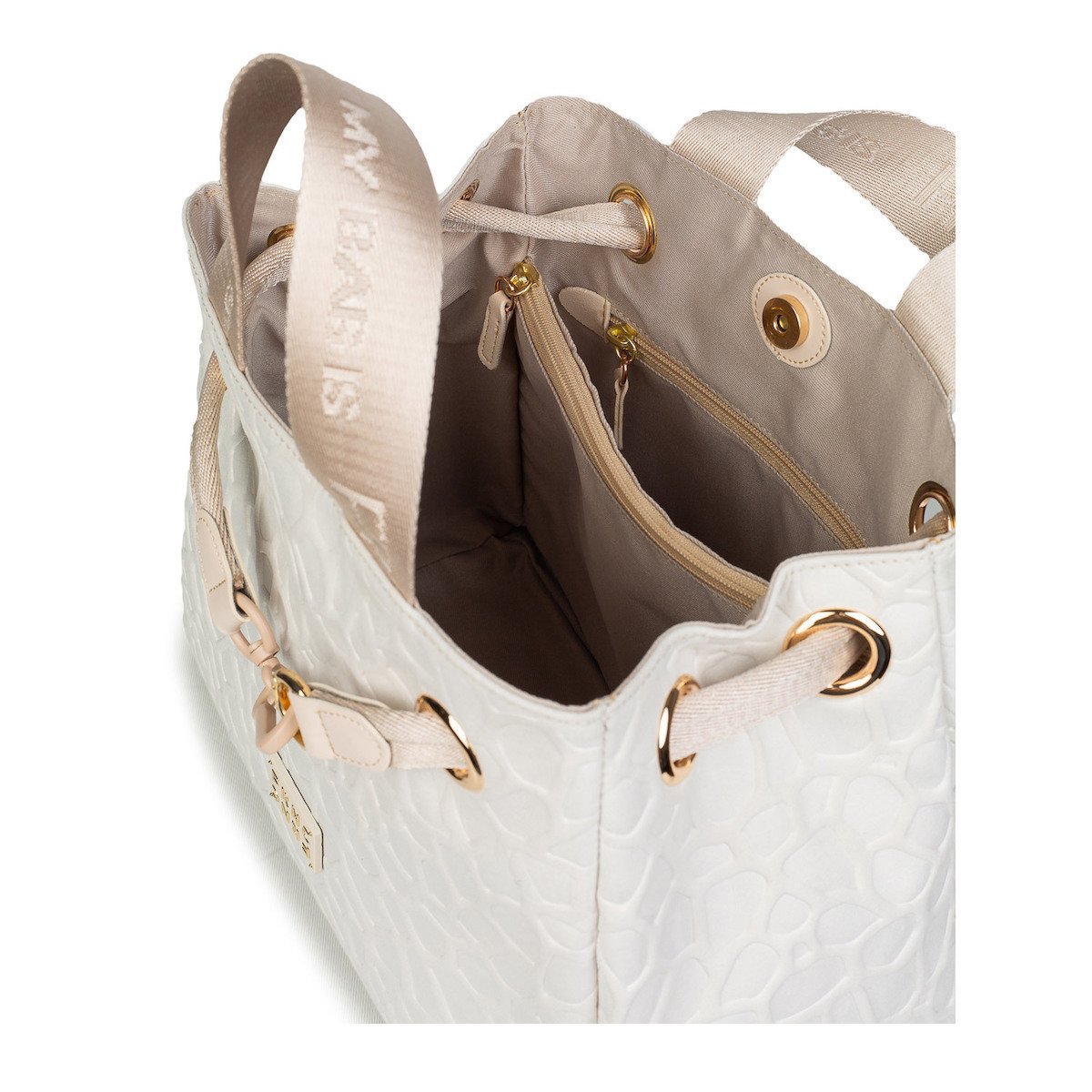 Σετ γυναικεία τσάντα tote της εταιρείας Guess κατασκευασμένη από δερματίνη σε μπεζ χρώμα. Ιδανική επιλογή για τις βραδινές εξόδους, μπορεί να κρατηθεί στο χέρι, προσδίδοντας στυλ. Το κύριο μέρος της τσάντας κλείνει με μαγνητικό κούμπωμα. Διαθέτει αφαιρούμενο και ρυθμιζόμενο λουράκι. • Διαστάσεις: Υ 17 x Μ 21 x Π 10 εκ. • Σύνθεση: 100% Polyurethane