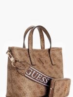 Σετ γυναικεία τσάντα tote της εταιρείας Guess κατασκευασμένη από δερματίνη σε μπεζ χρώμα. Ιδανική επιλογή για τις βραδινές εξόδους, μπορεί να κρατηθεί στο χέρι, προσδίδοντας στυλ. Το κύριο μέρος της τσάντας κλείνει με μαγνητικό κούμπωμα. Διαθέτει αφαιρούμενο και ρυθμιζόμενο λουράκι.
