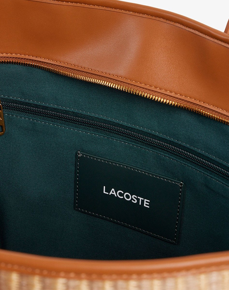 Γυναικεία τσάντα shopper ψάθινη της εταιρείας Lacoste σε ταμπά χρώμα. Ιδανική επιλογή για όλες τις ώρες της ημέρας, φοριέται περασμένη στον ώμο. Το κύριο μέρος της τσάντας κλείνει με φερμουάρ, παρέχοντας ασφάλεια κατά τη μεταφορά των προσωπικών αντικειμένων.