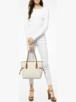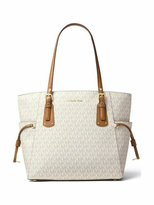 Michael Kors Voyager EW Tote Logo Δερμάτινη Γυναικεία Τσάντα Shopper ‘Ωμου σε Μπεζ χρώμα