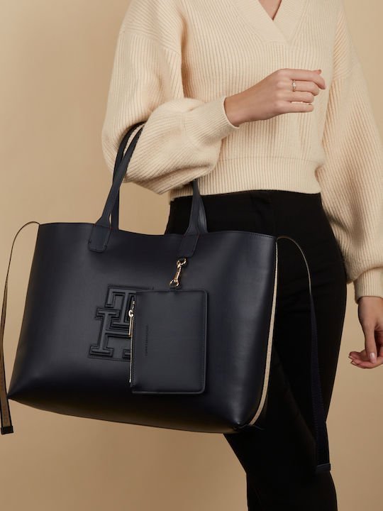 Tommy Hilfiger Iconic Tommy Γυναικεία Τσάντα Shopper Ώμου Μπλε